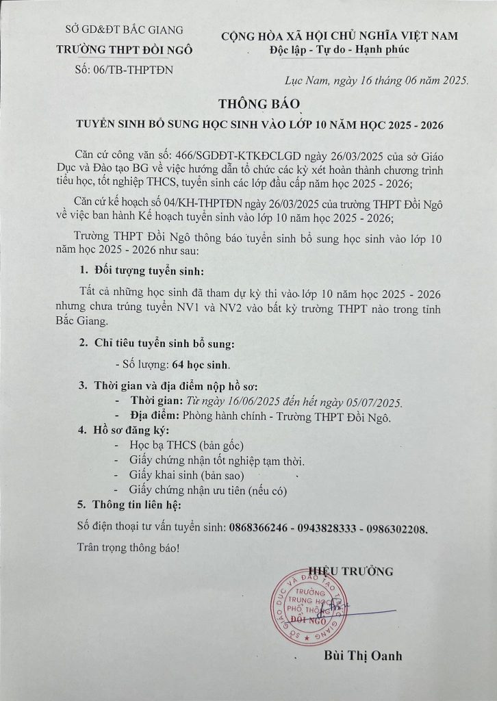 Đại Học Nông Lâm Bắc Giang tuyển sinh. Posted on 12/12/202512/12/2025 by Hoàng Giảng đường đã SẴN SÀNG chào đón 2k8 : Tốt nghiệp TPHT , con đường phía trước của bạn là gì ? Giữa nhiều lối rẽ : Tân sinh viên – Viết tiếp giấc mơ về một cuộc sống nhẹ nhàng, thêm một tấm bằng là thêm một cơ hội để bạn Tự Tin – Tự lập – Tự chủ – Tự chọn một công việc phù hợp với bản thân – Hãy đến với chúng tôi : Đại Học Nông Lâm Bắc Giang – Lựa chọn tin cậy của bạn. Xem thêm: Đại Học Nông Lâm Bắc Giang tuyển sinh. NGÀY KHAI GIẢNG NĂM HỌC 2025 – 2026 PHỔ BIẾN KIẾN THỨC PHÁP LUẬT VỀ AN TOÀN GIAO THÔNG THPT ĐỒI NGÔ TỔ CHỨC TUYÊN TRUYỀN CÔNG TÁC PHÒNG, CHỐNG MẠI DÂM NĂM 2025 CHUỖI HOẠT ĐỘNG CHÀO MỪNG 94 NĂM NGÀY THÀNH LẬP ĐOÀN TNCS HỒ CHÍ MINH Bài viết cùng chủ đề: THPT ĐỒI NGÔ TỔ CHỨC TUYÊN TRUYỀN CÔNG TÁC PHÒNG, CHỐNG MẠI DÂM NĂM 2025 PHỔ BIẾN KIẾN THỨC PHÁP LUẬT VỀ AN TOÀN GIAO THÔNG TUYÊN TRUYỀN VỀ TÁC HẠI CỦA HÚT THUỐC LÁ ĐIỆN TỬ TẠI TRƯỜNG THPT ĐỒI NGÔ CHUỖI HOẠT ĐỘNG CHÀO MỪNG 94 NĂM NGÀY THÀNH LẬP ĐOÀN TNCS HỒ CHÍ MINH NGÀY KHAI GIẢNG NĂM HỌC 2025 – 2026 THÔNG BÁO TUYỂN SINH LỚP 10 NĂM HỌC 2025-2026 CỦA TRƯỜNG THPT ĐỒI NGÔ TUYỂN SINH BỔ SUNG CHỈ TIÊU LỚP 10 THPT ĐỒI NGÔ TỔ CHỨC TUYÊN TRUYỀN CÔNG TÁC PHÒNG, CHỐNG MẠI DÂM NĂM 2025 Bạo lực học đường – Nguyên nhân và biện pháp phòng tránh